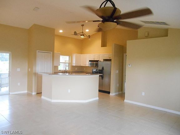 Fantastic Opportunity! Very Nice 4 Bedroom 2 Bath Home available for Sale Now! Great Room Floor Plan with Vaulted Ceilings and Tile Flooring in the Main Living Areas. Open Kitchen with Courian Countertops, Large Breakfast Bar, Dual Sinks, Recess Lighting, Pantry and Stainless Steel Appliances. Tile Throughout the Main Living Areas and Carpeting in the Bedrooms. Master Bedroom has 2 Walk In Sized Closets and Guest Bedroom #2 has a Walk In Sized Closet, Both have Fans and Both Lead to a Wonderful HUGE Screened Lanai! Guest Bedroom 3 has Fan and Walk In Sized Closet too! Guest Bath with Tub Shower Combination 1 Sink with Courian Countertop. Master Bath has Two Separate Sinks, Courian Countertop and Large Tiled Shower. Inside Laundry Room with Wash Sink and Washer and Dryer Included. Irrigation System Front and Back Yard. Young AC System and Hot Water Heater! Water Softener system and Reverse Osmosis at the Kitchen. Lovely Koi Pond, Deck and Shed all staying! Nice Yard. Close to Daniels, Lee Blvd and I75. Fantastic Home! Hurry This One will Sell Fast!