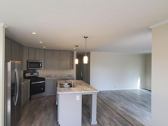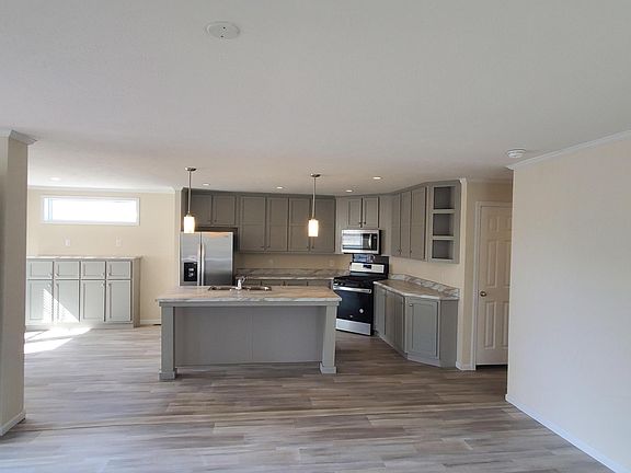 Brand new gorgeous home being offered in a great location! Upgrades throughout this is not your normal manufactured home! This home features an amazing kitchen with pendant lighting over the island, canister lighting throughout the rest of the home. A full 4 piece kitchen appliance set, with real wood cabinets, and plenty of counter and cabinet space. This home also offers a nice size living room with remote controlled ceiling fan, as well as a dedicated dinning room off the kitchen complete with buffet, great for entertaining. All the bedrooms are spacious and feature LED lighting and big closets. The master bedroom suite, features a very nice size walk in closet, and can fit a king size bed. The master bath features upgraded lighted mirrors and his and her sinks, with additional cabinet storage. These homes are brand new and built with high efficiency in mind, which is why we selected upgraded insulation in the flooring, and all of the windows are highly efficient. Central air and heat. Trash, Water, Sewer INCLUDED! Pet friendly limit of 3 (updated shots needed, sign off on pet agreement)
