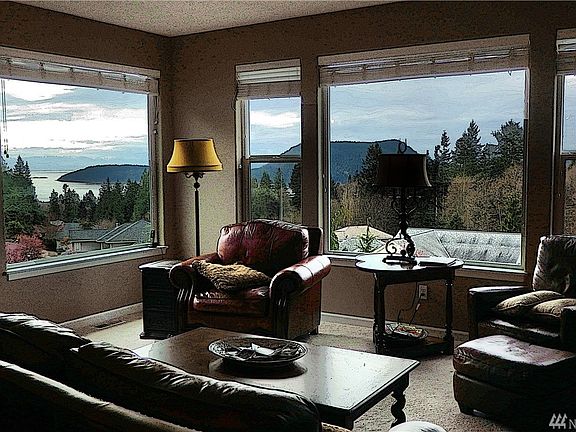 Come take a look at this breathtaking view from this beautiful Cedar Glen home. You feel like you are on top of the world in this home with views of Burrows Bay from your living room, dinning room and kitchen. Nice open floor plan with the master on the main and brand new master bathroom with soaking tub and beautiful tiled shower. Hardwood floors, new carpet, great lower level family room and two nice sized bedrooms make this a wonderful home. A gas fire fireplace on the patio complete the home