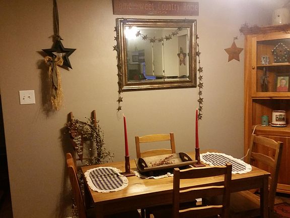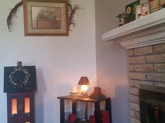 Solid brick rancher features wood burning fireplace with custom built bookshelves along each side, nice stone patio w/ firepit and deck off the dining area, hardwood floors, breakfast bar, full basement, updated bathroom, ceiling fans in every room. Brand new metal roof, new windows, new front door, fruit trees, new HVAC system, and covered porch