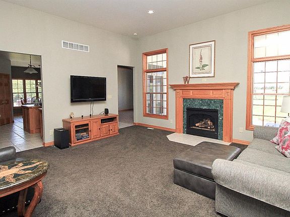 Beautiful, immaculate, 3-4 bedroom home on 12 acres. Includes 4 full bathes, 1st fl laundry, custom oak trim/doors throughout, Oak island in kitchen and marble/oak fireplace in great room. Spend your holidays in this hugh Finished basement with 4th bedroom, full bath, dry sauna, 2nd full kitchen, billiards room and family room.Home is 400 ft off rd with maple lined blacktop and cement drive. 32x40 2 story barn, mature fruit trees, covered porch and stamped patio. All you could want in the peaceful country to come home to! A must see to appreciate
