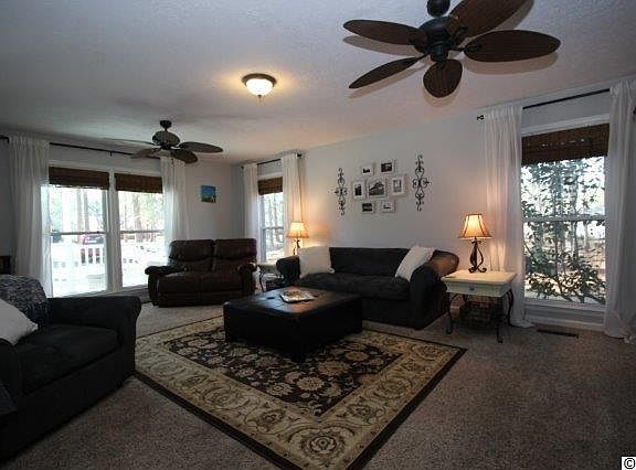 What a beautiful home full of large rooms great for entertaining and enjoying. Overlooking the Eagles Nest Golf course this two story home is nicely appointed and sits on a large lot. From the hardwood floors down stairs to the floored attic space and a large lot with great views. Large covered front porch welcomes you as you enter this updated home. Formal living and dining rooms flank the entry. Back of home is a large eat in kitchen with sliding doors leading to a multi level deck to enjoy the beautiful yard and course. Adjacent to dining is a mud room and laundry. And just off dining/kitchen is a 1/2 bath and great area for a desk or consider a butlers pantry area with 2 closets. Also down stairs you will find a large master bedroom and bathroom with his and hers sinks and a walk in closet. Upstairs you will find three very large bedrooms, full bath which has been updated, and a walk in attic space. New windows throughout and new roof, full and half baths updated, home painted inside and out, and new insulation. Great property at a good value.