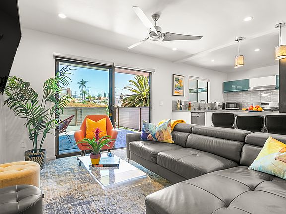 Make this recently remodeled and fully furnished and equipped modern haven in historic Mission Hills/Midtown your San Diego home base. Masterfully designed, this 1,540 ft. hillside gem delivers a clever, chic layout, three unique bedrooms, plus a lofted sleep space. A sprawling deck extends the living space outdoors, framing views of San Diego Harbor and inviting you to savor the city's signature alfresco lifestyle. Amenities Included: * Garage parking for 1 car with EV Charger; free street parking * High-speed Internet & WiFi included - stay connected. * All Utilities Included - no extra costs. * In-unit washer & Dryer - convenience at hand. * Private large deck - your outdoor retreat. * Spa-inspired bathrooms * Gourmet Kitchen ready for your culinary adventures. * Mini-split AC and heater in every room to keep you perfectly comfortable. * Filtered Water - Whole house water filter AND filter in kitchen. * Furniture, Smart TV, Housewares & Linens - move - in ready. * Private Entrance with Keyless Entry * Professionally Cleaned Between Stays- always fresh and clean. Step inside to a fluid living space where a gourmet kitchen melds with dining and the living room lounging zone, perfect for everyday relaxing or hosting a casual night. Sliding glass doors lead you onto the expansive deck, blending indoor comfort with outdoor living. Dimmable LED lighting casts a cozy, upscale glow throughout. The Master Suite, crowned with a queen bed, warms the soul with a built-in e-fireplace and pampers with a spa-inspired bathroom think pebble-stone shower floor, Spanish wave-textured Porcelanosa tile, dual sinks, toasty heated floors, and a Hansgrohe rain-plus-handheld shower duo. The second "semi-master" boasts a king-size bed and direct deck access, while the third bedroom offers a queen bed plus a full mattress in the loft bonus area. Each room sports a desk and chair, ready for work-from-home. Other things to note: * Pet policy: No pets allowed; small, well-behaved non-shedding, hypoallergenic pets may be negotiable * Smoking policy: Non-smoking property. * Third-from-top unit in a four-level hillside building, with a private entrance. * Rental rates adjust seasonally; * Flexible Mid-term leases available, 12-month leases preferred. * For leases of three months, a min $200 one-time admin fee applies The Locale: Mission Hills is San Diego's sweet spot trendy, central, and buzzing. Stroll to International Restaurant Row for top-notch dining, cafes, breweries, and wine bars. You're minutes from Little Italy's pulse, Old Town's history, Downtown/Gaslamp's nightlife, and medical hubs like UCSD, Scripps, Sharp, and Kaiser. The airport, beaches, Petco Park, Balboa Park, and the Zoo are just a short drive away. Hop on the trolley or bus at Washington St. (five minutes on foot) or Old Town Transit Center for quick access across the city and North County. More than a mere rental, this is your San Diego launchpad, where smart design fuels productivity and relaxed vibes elevate your downtime. Inquire and claim this urban oasis today! Flexible mid-term or long-term lease