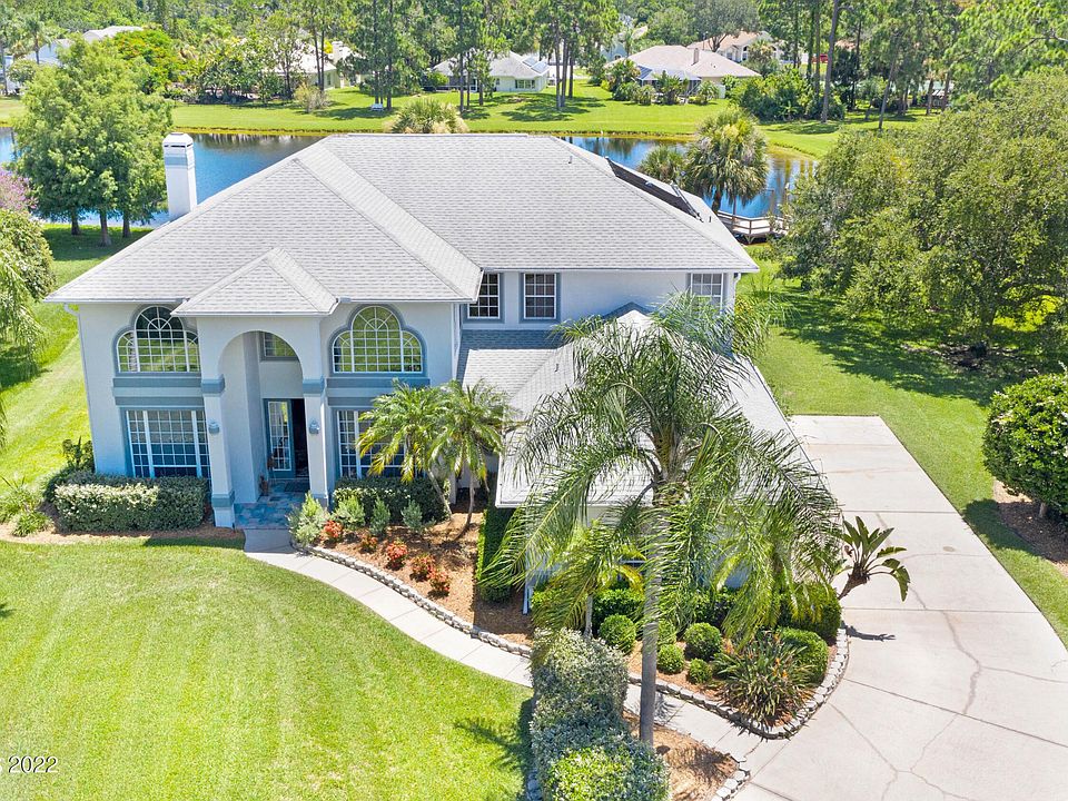 This lovely CARRIAGE GATE home boasts 4 Bedrooms, 3 full baths, and 2 half baths and sits on a half-acre lake front lot. On the first floor is the master bedroom with a Large bath with a private office (5th br) with its own access to the lanai and screened-in pool. There's also a dining room, formal living room, half bath, family room with fireplace and attached eat-in modern kitchen with a large island. In side Laundry room plus a built in Vacuum system. The large screened in patio covers the solar heated pool with separate built-in spa along with summer kitchen makes the patio the perfect place for entertaining. Upstairs you'll find 3 bedrooms, 2 full baths, and a large game room with an outside balcony that overlooks the pool/lake. Complete with a 3 car garage.