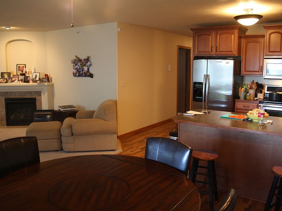 MAIN FLOOR NO STEPS!! Come see this amazing condo today! It has a large open living room with gas fireplace and a walkout to the maintenance free fenced in patio. The main floor ranch condo has been professionally painted, has gorgeous maple cabinets, with an eat-in counter, stainless steel appliances, wood laminate flooring and a separate dining area. The large master suite has a walk in closet, full bath with dual sinks and a linen closet. The other 2 bedrooms are very nice sized, it has a large separate (private)laundry in unit. These is a 2nd good sized bathroom with a linen closet too. There is a 2 stall attached garage. The building is a secured building and the grounds are very well maintained. Contact a REALTOR® today to view this great condition , amazing valued condo!