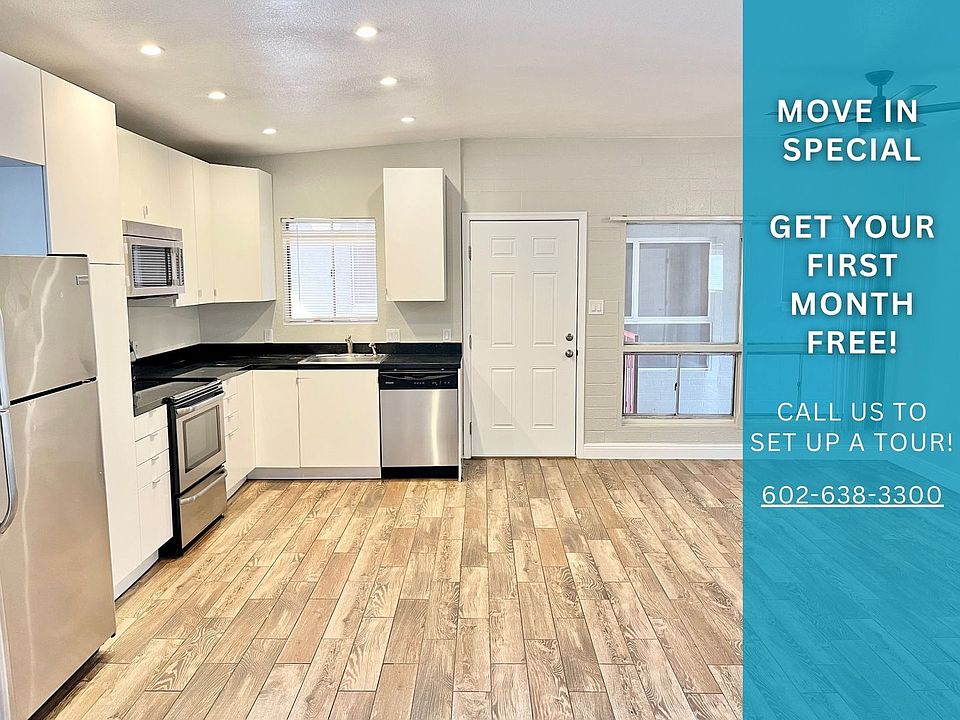 - Exterior features: , APS Electric, Argosy University, Banner Health, Barbecue, Belly Kitchen And Bar, Bicycle storage, Central High School, Close To 202 Freeway, DeVry Univeristy, Dignity Health AZ, Electricity not included in rent, Federal Pizza, First Month Free, Flooring: Wood, Frances Boutique, GCU, Garbage not included in rent, Interstate 10, Interstate 17, Melrose District Living, Move in Special 1 MONTH FREE, Newly Upgraded, No Smoking, Phoenix City Grille, Phoenix College, Retro Ranch, Sewage not included in rent, Sprouts, Stainless Steel Applicance, State Route Highway 51, Upgraded Features, Utilities fee required, Water not included in rent