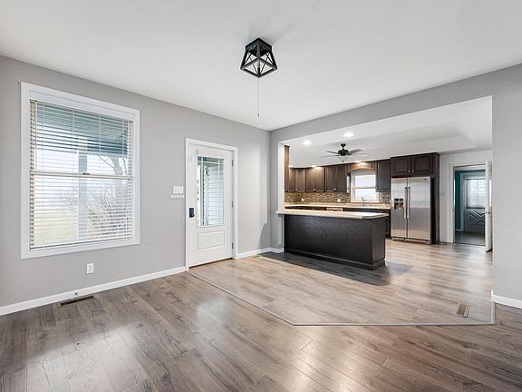 Don’t miss out on this meticulously updated renovated farmhouse that offers a perfect blend of modern comfort and rural charm! You’ll immediately discover all the upgrades as soon as you walk in the front door. The expansive kitchen boasts an abundance of cabinets with enough counter space to suit anyone’s culinary or hosting desires. What is even more amazing is that there are three full bathrooms that will definitely serve your family well – no more fighting for bathroom space! The large basement is also a plus as it keeps the utilities out-of-sight (central air too!) and is great for extra storage. The theme of space continues outside. For those wishing for a hobby farm, room to raise 4-H animals, or having an abundant area for outdoor activities, the 2.4 fenced acres is a definite highlight. With a new 32x14 shed (with overhead door) and a multipurpose barn there are multiple opportunities for a workshop, hobby space, large storage, and more! With easy access to the main highway, you’ll find commuting to work and shopping is quite convenient. If you are looking for a beautifully renovated and updated home with tons of space inside and out, this is it!