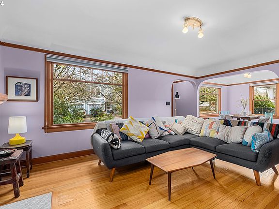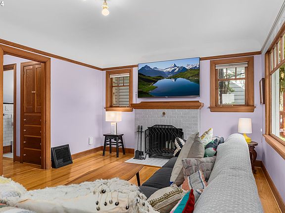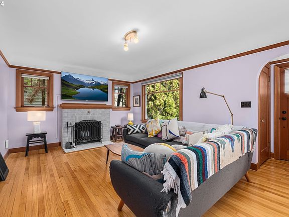An immediate feeling of warmth greets you in this adorable 1938 Bungalow. A cozy home that lives large with 2 beds on the main and a fantastic remodeled upper level primary suite. Natural woodwork trim and molding, wood burning fireplace and tile mantle, hardwoods and original details give a strong vintage feel while new School House Electric fixtures, subway tile & classic black & white mosaic tile blend in perfectly. Upper level has been thoughtfully transformed into an amazing primary suite. This unexpected modern bedroom and gorgeous bath renovation features- Hardwood floors, wood & steel railing, walk in closet, sky lights with solar blinds, double sinks, large tile shower with rain forest fixture and street of dreams glass shower door. Lots of finished under eaves storage space. Spacious bedrooms on the main offer floor plan options. Blown in insulation in upper area. Easy access to the beautiful low maintenance backyard thru french doors to pergola covered deck. Rare 2 car garage and long drive way. Loads of storage in the full unfinished basement. Radon mitigation system, A/C, 200 amp panel, all appliances stay. Steel support beams and posts have been added to basement! Don't miss this gem!