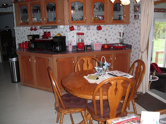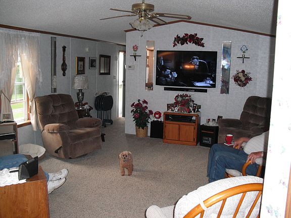 3 Bedroom 2 Bath singlewide that lives like a house.There is an addition on the front and a sun-room on the back.Much work done in the last couple years. Walls were plastered,upgraded kitchen & bath with new kitchen appliances. New Oak floors, Sun room has gas fireplace. Wonderful county location with a 54' x 42' horse barn. 2 car garage. 5.6 acres.
