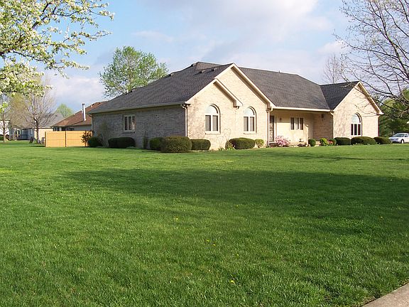 Custom Full Brick Ranch on a large .66 acre cul-de-sac / corner lot. Located in desirable New Palestine in SW Hancock County. This four bedroom home has hardwood floors in LR & DR. A cozy Gas Fireplace in LR. It has a Large Country Kitchen with Island and custom Granite Countertops. The master bath has a wonderful Garden Tub. There is a very Large Deck in the rear and a covered front porch to watch the setting sun. This home is spacious with Nine-Ft ceilings throughout. The separate laundry / mudroom is a plus. Attractive crown moulding in Foyer and DR. An impressive home in popular Deer Run subdivision. Four Star schools.