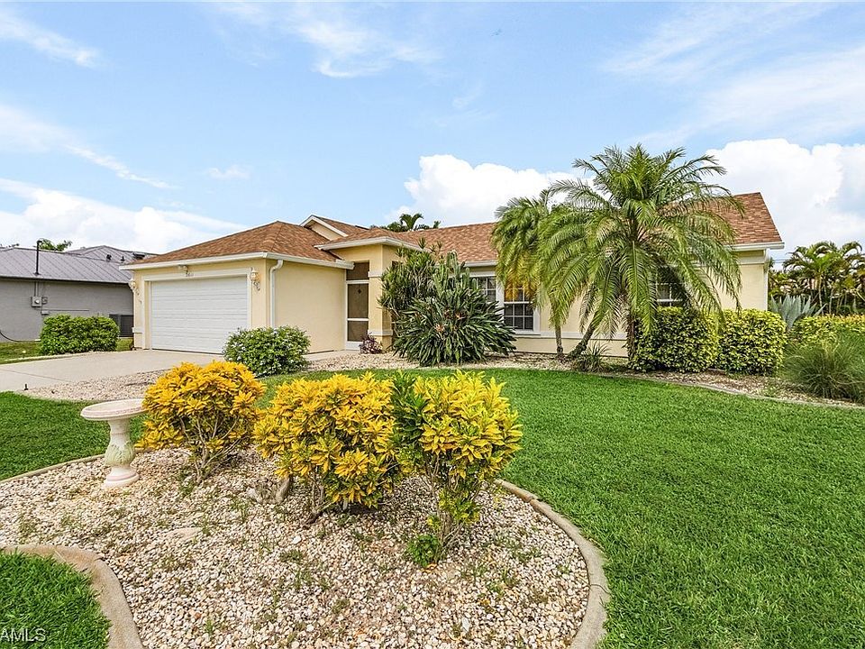 Welcome to 3611 SE Santa Barbara Pl in lovely Cape Coral. NEW ROOF JULY 2021. This beautifully landscaped home has it all! Vaulted ceilings, Home energy package with solar attic fan, upgraded insulation, new hot water heater, energy saving appliances, stove and refrigerator. Kitchen with breakfast bar, pantry, stainless steel appliances, connects to a formal dining room. Roomy bedrooms. Heated pool. Waiting for it to be installed. Truly amazing landscaping front and back. A lot of privacy in the backyard. Schedule a showing today!