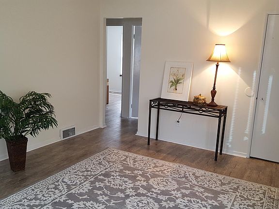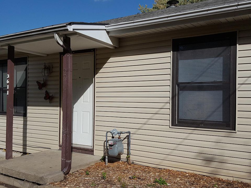 THIS IS A NONSMOKING PROPERTY. When entering, one sees the living room with laminate floors. Off the living room is the kitchen with golden oak cabinetry and a divided pantry for keeping food and extra cookware. A large basement affords storage space and in the spacious laundry room a washer and dryer. Two bedrooms complete the home. Sliders from the kitchen give access to a long veranda and a fenced-in yard gives children and pets a safe place to play. Tenant pays Water and Mid American. Tenent is responsible for yard work.