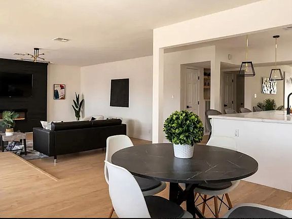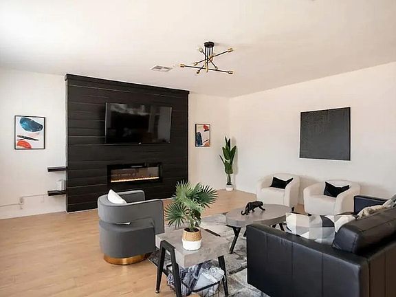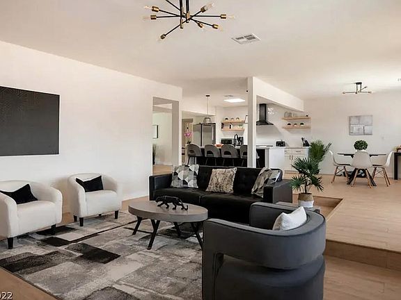 Beautiful fully remodeled single story home with RV parking and circle driveway. This home has nothing but top modern finishes throughout and furnished with modern furniture All bedrooms are HUGE!! Master has gorgeous walk in shower with double rainfall heads, Living room with electric fireplace, and a huge pool in back!! Kitchen includes new custom white cabinetry with black and gold finishes, dramatic black range hood flanked by floating shelves, all new stainless steal appliances along with large island topped with gorgeous black and gold pendant lighting. Only ten minutes from the strip!