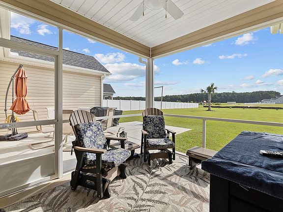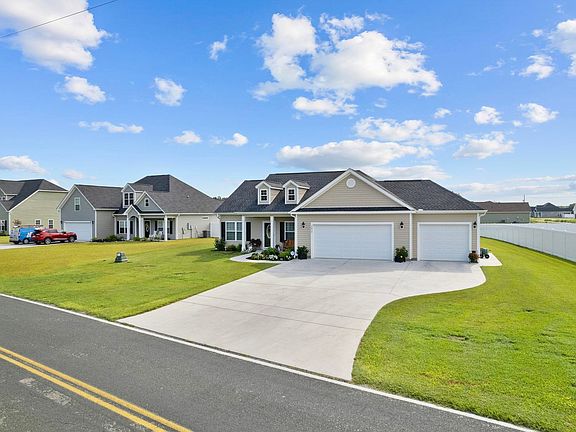 .57 acres on a country road, rear screen porch overlooking a spacious back yard. NO HOA! This beauty has an open floor plan, granite countertops with stainless appliances, tray ceiling in the dining room and vaulted ceiling in the living room. Owner Suite has a tray ceiling with a ceiling fan. Gutters, sodded yard with rain sensing irrigation system. The front ditch has been tiled and additional trees and shrubs planted. Waiting for you to park your car in the finished 3 car garage! New paint makes this a terrific find in a quaint, friendly town. Award winning school district too! An easy commute to the beach. Square footage is approximate and not guaranteed , buyer is responsible for verification.