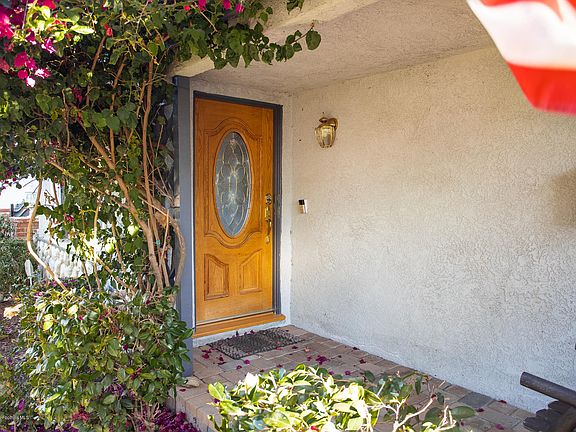Traditional gabled 5 bedroom 3 bath home w great curb appeal. Front yard is pleasingly landscaped with lawn, shade tree & a bright bougainvillea beckoning you to the entry porch. Inside the open living space features beautiful newly finished oak floors, stone fireplace and opens to the formal dining room. The kitchen opens to the dining room, living room & the patio deck which overlooks the spacious backyard. The kitchen features oak floors & cabinets. The cabinets have pull-out shelves & include a tall pantry also with pull out shelves, extensive granite counter space, a stainless-steel sink and gourmet gas cooktop. Step out of the kitchen to the deck overlooking the shaded backyard and enjoy a quiet afternoon or party on the deck with the built-in barbeque, outdoor counterspace and sink. Upstairs are three bedrooms including a luxurious master suite. Bedrooms 4 and 5 are downstairs and perfect for guests or office space. Three car garage w 2 doors w room for 2 standard cars plus 3rd car or boat or big toys. Workshop behind garage opens to all garage spaces for easy access. Main driveway is gated w room for 3 or 4 cars behind gate plus separately gated parking w waste drain for a xxx RV. All of this plus a solar system to reduce your electric bill.