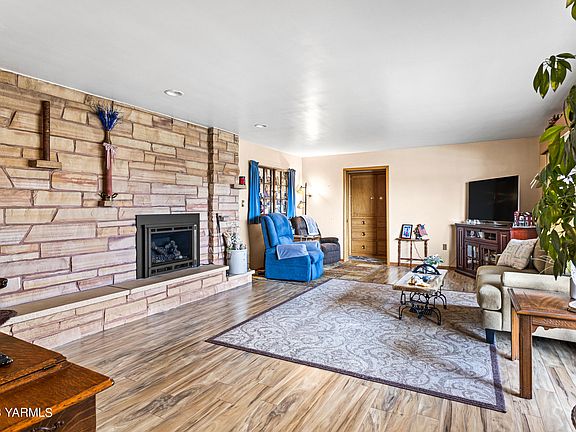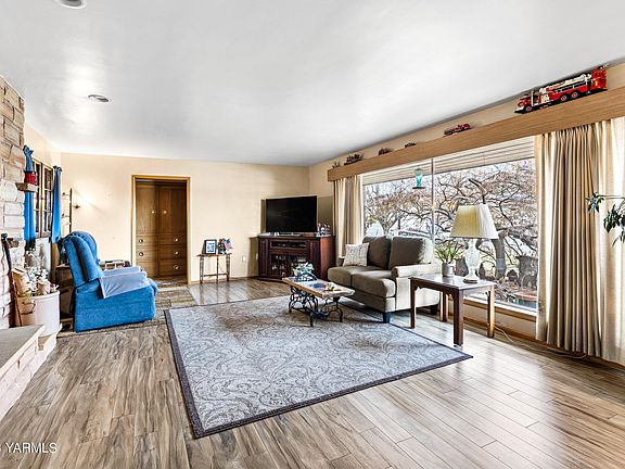 This easy living and easy to maintain home built in 1960 is located close to churches, shopping and the highway in sunny Yakima WA and features a beautiful front room with a large window where you can see north to the ridge, a gorgeous light brick fireplace with brand new gas insert and newer hardwood floors. The oversized kitchen can fit everyone during your gatherings and has been updated with recent additions including a new cooktop and dishwasher and of course includes amazing 1960's built in cupboard space all through the home. Most of the living space is on the main floor - Two bedrooms on the main floor are in use and a potential 3rd is currently being used as an office adjacent to the dining room. (All you need to do is inclose the room, Or use it as a second living space, home office/home school room.) Currently 1.5 bathrooms, although the laundry can be moved back to the kitchen (where coffee bar is now) and retake the shower for 2 full bathrooms. The dining room has a lovely built in china cabinet, then there is another large room in the lower level that could be 3rd non conforming bedroom, bonus living room, movie theater or home gym. The entire first floor is currently handicap accessible. There is also wood working/shop space in the utility area and again - more storage. Brand new Air Conditioning unit replaced in summer 2022 and the roof was last replaced in 2012. Outside this home is really a gardeners delight - lots of blooming plants. The back deck is partially covered and private. (Hot tub currently non working, sold as is or will be removed at closing) There is also plenty of parking space here. Lastly don't misinterpret the size of this large corner lot! Flags mark the boundaries, simply add a fence and you have a perfectly private back yard.