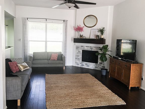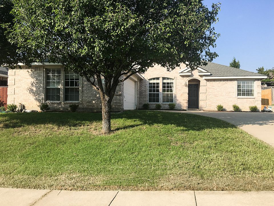 Beautifully updated home offering an open floorplan, split bedrooms, large master suite with patio door, double vanities, garden tub, separate shower, large master closet. New interior paint, floors, marble fireplace surround and custom mantle. Extended driveway for extra parking. Close to schools, minutes from Firewheel Mall and State Farm, with quick access to George Bush. Buyer to verify measurements.