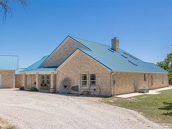 Discover unparalleled privacy and rustic elegance with this stunning 3BR, 3B, luxury ranch home on 3.63 acres. This one-of-a-kind property features a private water well, producing 68 GPM servicing the home and land. Skylights are thoughtfully placed throughout the home creating an inviting atmosphere. Equestrian enthusiasts will appreciate the well-maintained horse barn, while those who value space and solitude will love the wide-open grounds. Heated floors can be found in the secondary bathroom, and kitchen dining areas. Step inside to the spacious living area featuring a cozy stone wood burning fireplace with incredible custom cabinets and a vaulted ceiling. The large sunroom has a wall of windows and is the perfect place for watching wildlife. The spacious kitchen features an abundance of CTs, custom cabinets and a walk-in pantry. The large formal dining area gives you extra space for hosting holiday meals. The primary bedroom has a vaulted ceiling, an en suite bath, separate shower, jetted tub and a walk-in closet. There are two secondary bedrooms with large closets. The back porch was made for entertaining! There is a stone outdoor kitchen equipped with a sink and two flat top grills. Just steps below is a stone wood burning fireplace with breathtaking views. Guests will love the unique partially enclosed outdoor bar and patio area with sink and water hook up. This property also features a garden, peach, pecan, and plum trees on automatic irrigation which make for a gardeners dream. An above ground pool on a concrete slab is ready to go and can be enjoyed all summer long. Greenhouse, storage shed, 2 RV hook ups with 30 and 50 amp electric service and water hook-ups. A 24K generator will convey with sale. Oversized three car garage with a finished attic space could be easily converted into additional living space. You quite literally have everything you need here. Call today to schedule your showing!