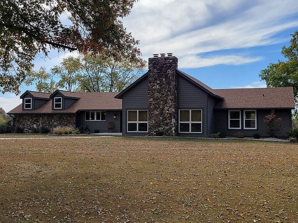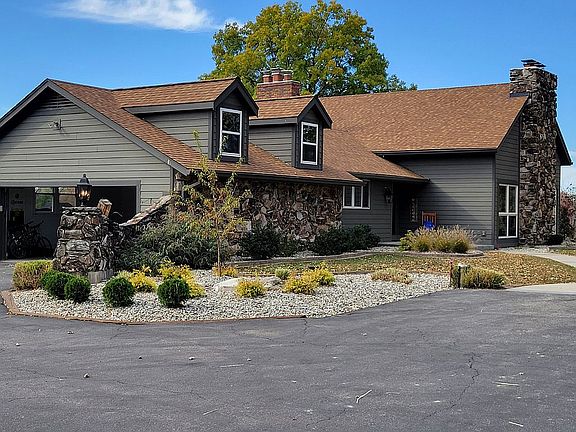 The possibilities are endless for this Country Estate with 15 acres and plenty of blacktop Highway C frontage. Home has approximately 4200 sq. ft. of living space and has been extensively remodeled including: new roof, windows, doors, siding, 3 decks, all hardscape and landscaping, new septic tank/lagoon. There is also a 16x32 salt water pool with new stamped pool decking, and all new pool plumbing and mechanicals. Inside has been remodeled as well and includes a sunken beamed vaulted great room w/large stone wood burning fireplace, hearth room w/masonry wood burning fireplace , vaulted custom kitchen w/abundant cabinetry, black walnut and solid surface counter tops, spacious coffee bar, huge master bedroom suite with access to private deck & pool area, 2 additional main floor bedrooms, upper level bedroom w/private 1/2 bath, LL family room w/fireplace & wet bar area, bedroom, office, full bath, 3 walkout doors, huge storage areas, 2 outbuildings (24×44 enclosed & 32×48 southern opening), chicken coop and enclosed run, blacktop driveways, 30 amp RV outlet, and the list goes on and on! What a spectacular peaceful setting with easy access to 4-lane for commuting. This is a one of a kind property!