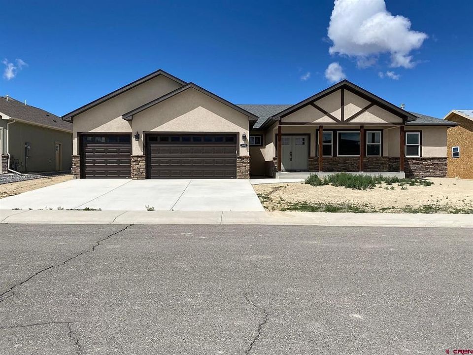 Brand New home just finished. 3 Bedroom, 1-3/4 bath, 1- 1/2 bath and 1- full bath. 3 car attached garage,2012 finished square feet all on one level Fireplace in living room (gas) Gas Range and Oven Gas and or Electric Dryer hook up. Beautiful ceiling fans through out Covered Patio Must See
