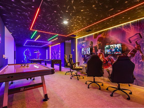 This spacious luxury home is nestled within the exclusive Windsor Island Resort, offering easy access to Orlando's theme parks, dining, and top shopping destinations. The home features 10 spacious bedrooms with attached bathrooms, multiple living areas, a spacious loft, a gourmet kitchen, an expansive yard, and a private pool and spa, ensuring you feel at home. Guests have full access to amazing amenities, including a huge luxury clubhouse, pool, a free-to-play arcade room, and much more.