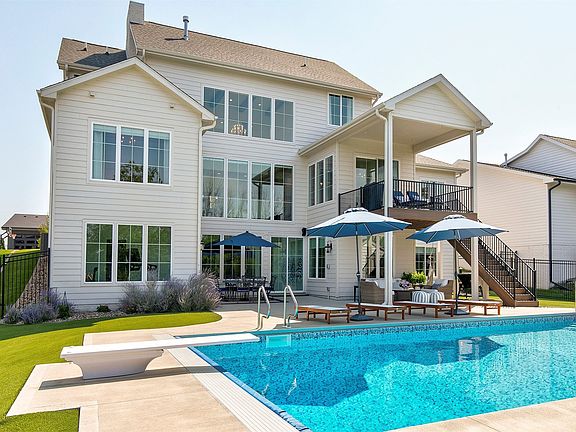 Enjoy resort-style living in your backyard with a heated and cooled saltwater pool, artificial turf (pet-safe in the backyard), and built-in speakers both inside and out. Backing to protected Clive land, this home offers privacy and natural views. Additional highlights include engineered white oak flooring, a two-story great room, and a 26' deep garage.