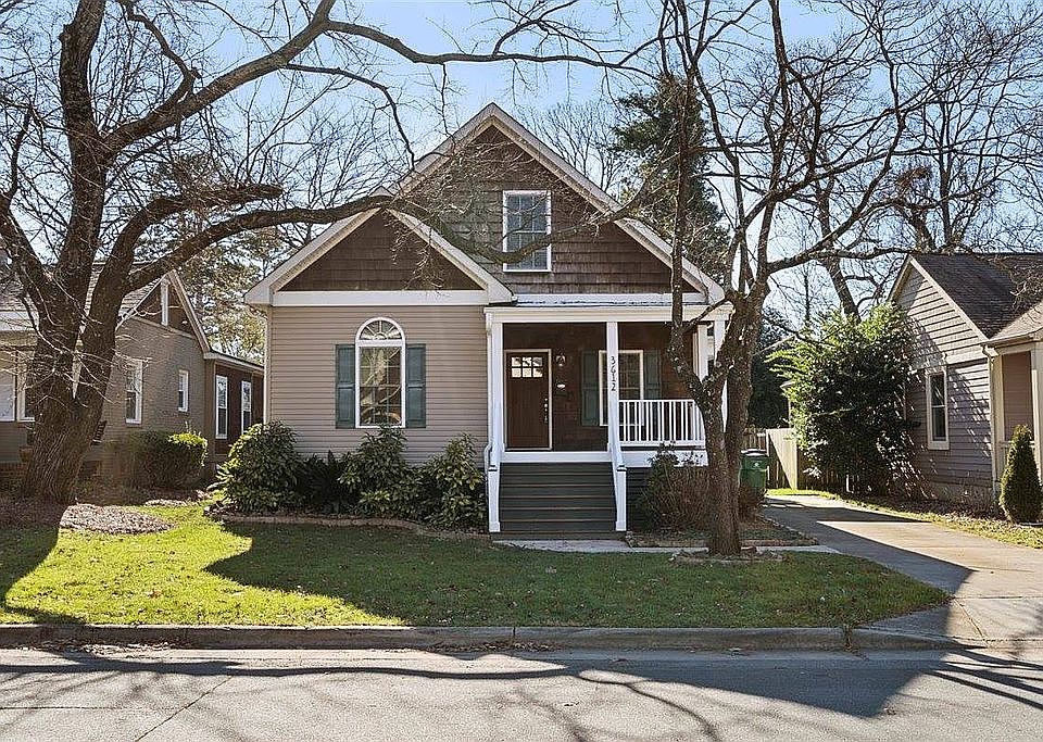 Desirable NoDa home available! The inviting, over-sized front porch and cedar shake siding greet you as you arrive. Step inside and gorgeous hardwood floors run throughout the homes open floor plan. The kitchen hosts granite counters, stainless steel appliances and a center island. The master bedroom sits on the main level, with en-suite that features a dual sink vanity, garden tub and stand alone tile and glass shower. A secondary bedroom and full bath are also on the main level, great for a guest room or office. Upstairs you'll find a bonus room and two additional bedrooms. Out back is your own private escape with a covered porch, huge deck, hot tub and fully fenced in yard. Both HVAC systems replaced in 2018 and 2019.