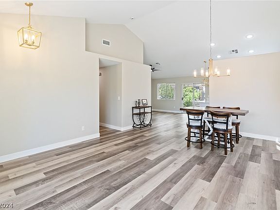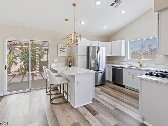 Discover this beautifully remodeled single-story home, centrally located for optimal convenience. The property boasts vaulted ceilings and has been updated with fresh paint, luxury vinyl plank flooring, and modern lighting fixtures. The modern kitchen is a highlight, featuring brand-new cabinetry, stainless steel appliances, and quartz countertops. Enjoy the proximity to local amenities, including shops, the Las Vegas Strip, Red Rock Casino, Downtown Summerlin, and the airport—all within a 5-15 minute drive. The serene backyard offers a covered patio, spa, and thoughtfully designed desert landscaping, creating a perfect retreat for relaxation and entertainment. Owner is an active Real Estate Agent In The State of Nevada