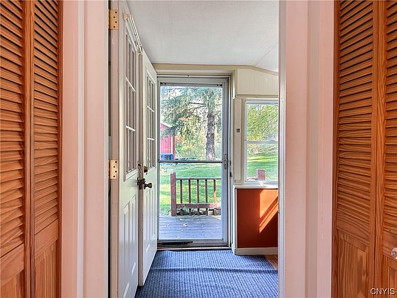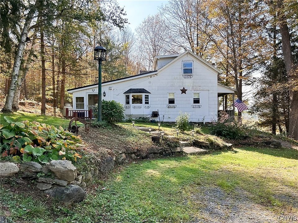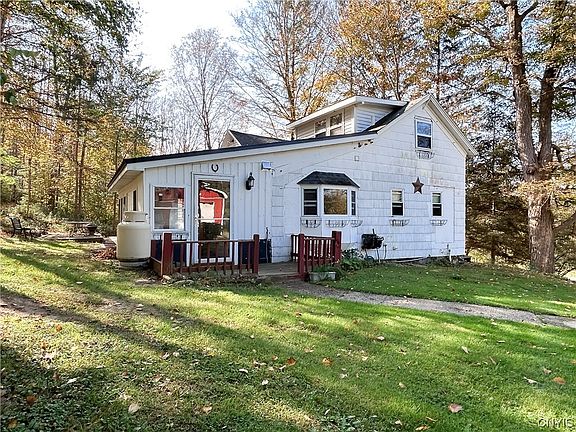This updated 2 bdrm/1 full bath home includes 13+ acres with a beautiful wooded lot, complete with it's own stream and treehouse! The updated kitchen, with breakfast bar and newer appliances leads to a lovely outdoor space with a large deck. The living room has a Lennox gasifire, high efficiency, fireplace that will warm the entire house during the winter, gleaming wood floors and french doors to the deck overlooking the property's calming stream. Upstairs, you will find the primary bedroom w/newer carpet and sliding glass door overlooking the serene backyard and the second good sized bedroom and plenty of storage! The 30'x36' pole barn will hold all your cars/toys and has leased solar panels that will save you $$ on your electric bill!! The home has oil or wood pellet furnace, again making it very economical to heat! This property includes 1.3 acres with the home and an additional 11.83 acres adjacent, creating your own expansive retreat. The septic pump and leach field are new as of March 2024. Schedule your showing today! BEST AND FINAL OFFERS DUE BY WED., APR. 10TH @ 5PM