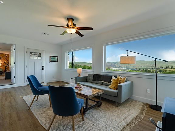 Discover your new home in The Dalles, OR! This charming 2-bedroom, 1.5-bath house sitting on 4.38 acres, offering stunning views of the Columbia River, Mount Adams, and the city. Just 5 minutes from downtown, it features an updated kitchen, partially irrigated land, and a fully fenced property. Additional amenities include a barn, a shed, and two other outbuildings. Enjoy the perfect blend of convenience and natural beauty. Schedule your viewing today!