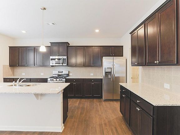 - Kitchen Features: Breakfast Bar, Eat-in Kitchen, View to Family Room, Stone Counters, Kitchen Island, Pantry Walk-In, Cabinets Other