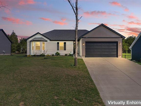 IMPROVED PRICE!! Come home to the quiet, private Community of Evergreen Lakes. Almost new, charming 3BR/2BA home built in 2022, boasts 1,400sqft interior, vaulted ceilings, recessed lighting, modern ceiling fans in bedrooms and the comfortable living room area, and an open concept kitchen featuring granite countertops, stainless steel appliances, a main floor laundry room, W&D included in the sale. Relax outside on the deck or entertain guests on the welcoming patio with a gazebo—The spacious yard has ample space for relaxation with a perimeter fence to accommodate pets if needed. The primary bedroom suite has a deep 6’11” x 4’6” walk-in closet, the bathroom has a beautiful shower with a dual sink vanity. Two additional bedrooms comfortably accommodate guests while also offering flex space possibilities. The 19’5”x19’2” two-car garage has an insulated door. Full basement 51’1”x28’1” with roughed-in plumbing and an egress window ready for the next owner finishing plans!