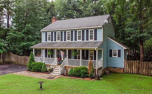 Take a look inside this 3 bed, 2.5 bath Chesterfield colonial! Outside, the large newly paved driveway has plenty of space for parking! Across the covered front porch and inside, youâll find a large living room with brick fireplace and exotic Brazilian walnut hardwood floors throughout the first floor. The eat-in kitchen features stainless steel appliances and granite counters, while the formal dining room has chair rail molding and a bar area making it a great space to entertain guests! Upstairs, the master bedroom features a walk-in closet and attached bath with double vanity, and the other two bedrooms are spacious and bright! Off the living through a set of French doors youâll find the back deck, perfect for grilling this summer! The large backyard is wooded and fenced in for privacy and has a large detached storage shed! Schedule your private tour today!