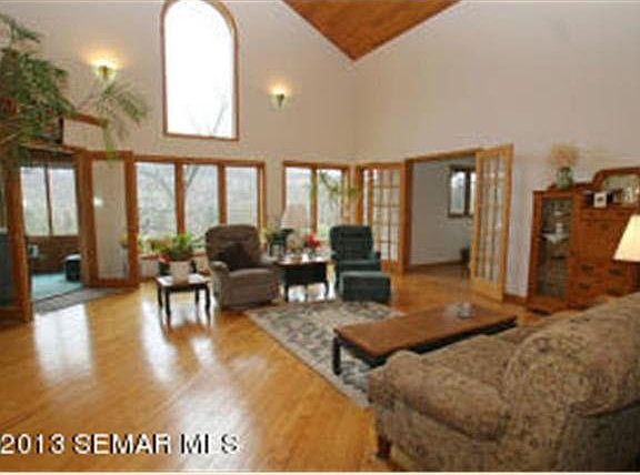 18 Acre Slice of Paradise.Many people dream of a home like this tucked in the woods with a babbling brook nearby & wildlife all around. Open floor plan, 2 Story Vault in LR, Main level BR, bath & laundry. Sunroom overlooks Cherry Creek. 5 Acres tillable