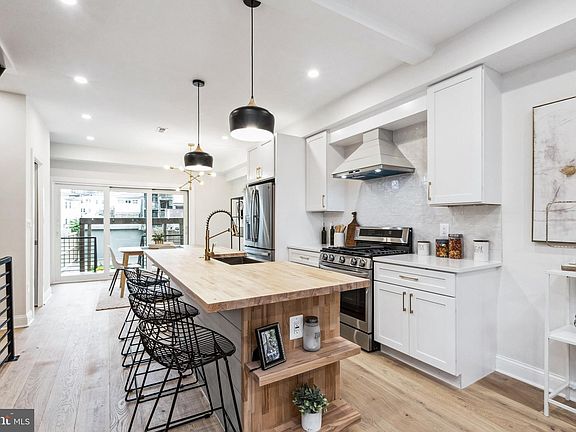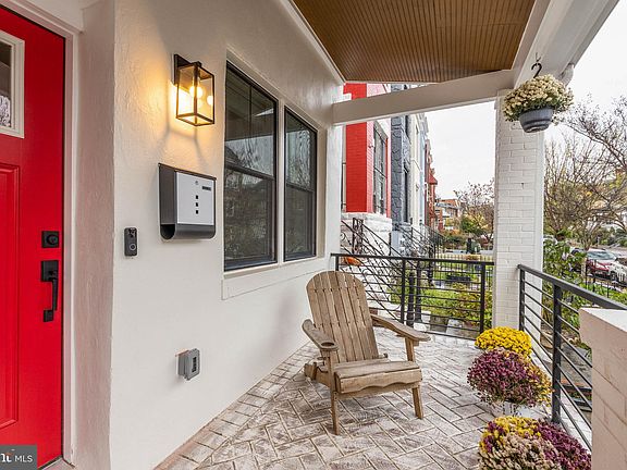 Stunning contemporary rowhouse! Move-in ready! Classy finishes from top to bottom: from the gourmet kitchen, white quartz countertops, a butcher block island, white oak flooring, custom metal-framed floating staircase, Euro-style bathrooms, skylights, and more. Flooded with light on the main and upper levels including 2 skylights on upper level. Basement has its own private entrance, kitchenette, and a bedroom and full bath. Potential for short term or long term visitors as it's fully independent. Tankless water heater and LL laundry. Pergola over patio and a manicured rear lawn, custom exterior metalwork, gated 2-car private parking. All the conveniences just steps away: restaurants, Safeway, CVS, shopping, & metro!