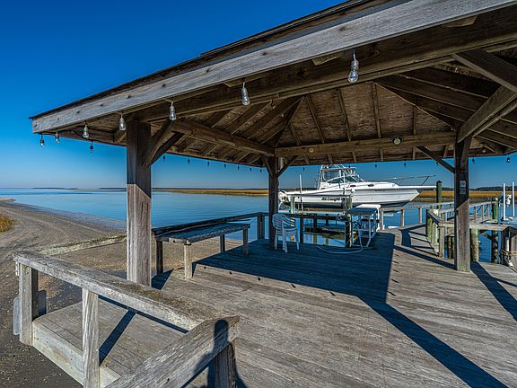 MAGNIFICENT CUSTOM DESIGNED DEEPWATER HOME sited on a quiet cul-de-sac with breathtaking views of Creek, Sound, & Beach. Superior design, construction, & materials on Edisto Beach's premiere location. Custom high-end features abound: Hardie plank siding, brick porches, Pella windows, wrought iron handrails, 3-stop elevator, variable width white oak floors, 5 whirlpool tubs, Chef's kitchen with gas cook surfaces/wine cooler/solid surface counters/wet bar, 50 yr roof, upstairs living area, whole house reverse osmosis, workshop, & much more. Beautifully & fully furnished (list of exceptions to be provided). Outstanding Ipe-decked dock facility with 24000 lb 4-piling lift, a 5000 lb single piling lift, 5' boardwalk, 17' @ MLW, roofed pierhead, & a 46' x 10' float. This is the closest dock to the Atlantic Ocean on South Carolina's coast! Rental potential $120,000-135,000 gross/year. A HOME AND LOCATION SECOND TO NONE! HURRY ON DOWN!!