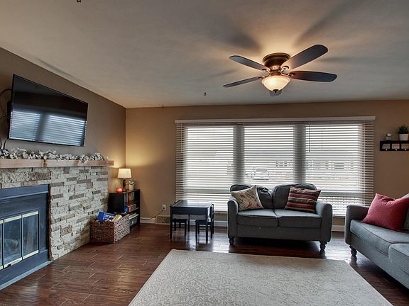 Great location and central to shopping! Spacious ranch with hardwood floors, updated kitchen, new front bay window, and gas fireplace (never used). Third bedroom has carpet tiles easily removable. Lower level offers a theatre room. Theatre system including screen, projector and speakers negotiable. Furnace - '21, Central Air - '22. Electric box and many outlets updated. Basement wall repair was prior owner. Current owner is second owner of home! Fenced yard.