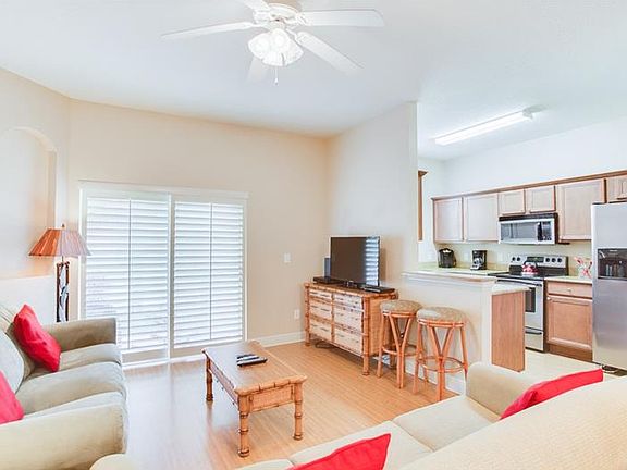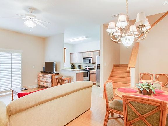 4 bed 3 baths, Granite counter tops, stainless steel appliances, laminate floors on the living room & stairs, plantation shutters tastefully furnish. Home shows very well and must see. Regal Palms is an exclusive private, gated Resort community located just 15 minutes from Disney World's Main Gate. The complex consists of 600 town house style homes in a lovely Tuscan Villa style setting with several amenities. You will be delighted with our 2 1/2 acre tropical swimming pool and lazy river oasis, complete with heated pools, water slide with waterfalls, outdoor & indoor Jacuzzis. Sun bathing terraces, a playground and a volleyball court with a pool side "tiki" bar. The fitness center has a therapeutic Jacuzzi, steam room and sauna along with elliptical equipment. The spa allows you to pamper yourself with massage, manicures and pedicures, etc. Inside you can enjoy dining at our restaurant and bar, surf the internet on your laptop using free Wi-Fi, or utilize our business center. We offer live entertainment (seasonal), event celebrations on holidays and even a market place for the must have items! The Guest Services is open 24 hours. Onsite is Banana Jacks, a 4000+ sq. ft. family style environment with games, food & fun for all ages. Regal Palms is the most highly sought Resort Community in the Davenport area for short term rental.