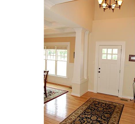 This charming and immaculate Craftsman style home on 1/2 acre beautifully landscaped corner lot boasts of numerous upgrades inside and out. The two story foyer, coffered dining room, windowed three sided Sunroom, open family, room, Chef's kitchen with custom cabinets, Bosch stainless appliances, granite countertop with raised breakfast bar and large eat-in area opens to designer patio with gazabo and wooden fenced yard. In addition, there is an Owners suite with luxury bath and exercise room/office. Three car garage and walk up attic with potential for media room is further enhanced by Blue ribbon schools, RIVER ACCESS from the neighborhood as well as Robious Landing Park (within walking distance), state of the art neighborhood pool and clubhouse. as well as miles of walking trails.