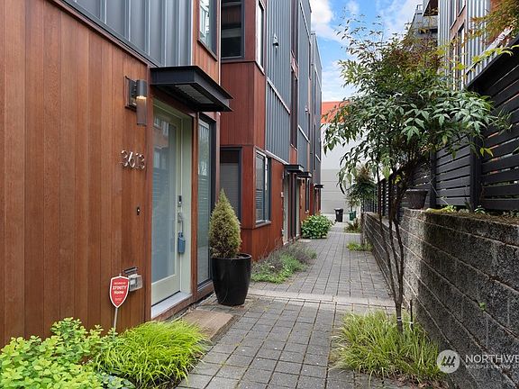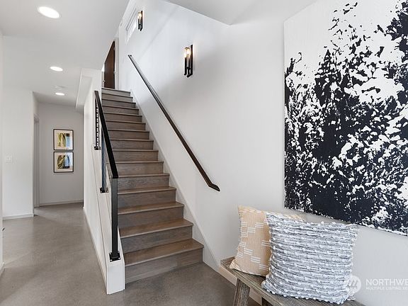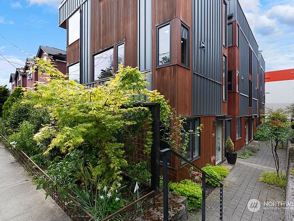 NEW PRICE! Finely crafted free standing home with outstanding finishes & modern aesthetic located just steps to many amenities. Fremont, Wallingford, Gasworks Park, Greenlake, dining, coffee, nightlife, Burke Gilman Trail. 3 bedrooms & media rm or office area, 2  3/4 baths plus 1/2 bath off great rm. Remodeled primary suite bthrm, flooded w/natural light, a rare & exceptional use of space. Dramatic open beam ceilings & even more dramatic open vaulted entry. Designer finishes throughout, hardwood & concrete floors, quartz counters & Bertazzoni gas stove. Radiant heat plus A/C. Relax in style on the rooftop deck w/spectacular city & Lake Union views. This home has it all; location, views, space, & finishes. 1 designated parking space, no HOA.