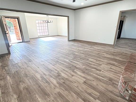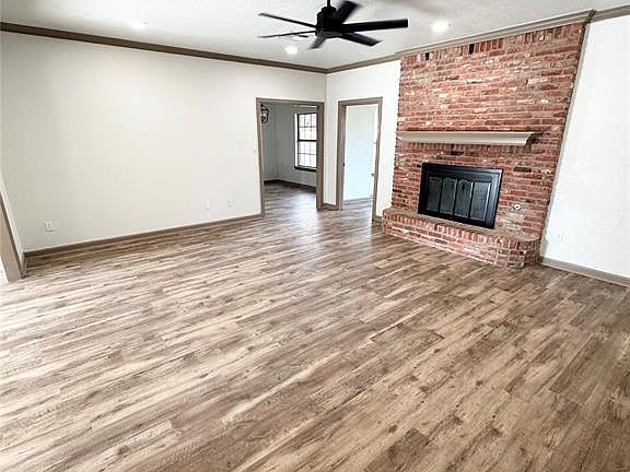 NEW ROOF! BROKER OWNED. This 4-bedroom, 2-bathroom property truly has it all. From the 2 living rooms to the freshly put in Lanscaping (complete with soaker hoses in front and back) you will fall in love with all this home has to offer. The living room and dining room are open creating the most desired open concept. The brick fireplace works and is gas. All can lighting, light fixtures, and flooring throughout (laminate and carpet) are brand new. You will adore the granite counter tops in the kitchen, bathrooms, and laundry room. The 4 bedrooms are spacious with a generous amount of closet space. The master bedroom steals the show with gorgeous ceilings, an on-suite bathroom featuring, double vanities, a large walk-in shower with his and hers space, a huge walk-in closet, and a door leading to the private, covered back patio. The second living space has a full built in desk with tons of shelving and storage. The backyard is a great size, privacy fenced, and nicely shaded in some spots. 2 car garage. MUST SEE!