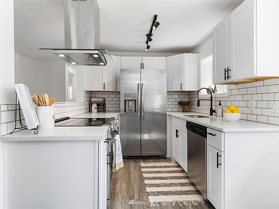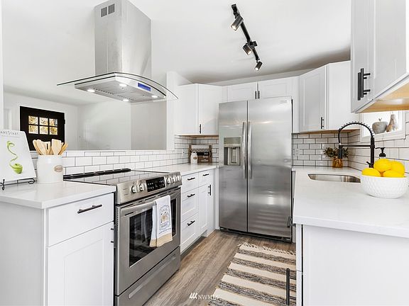 Cozy and beautifully remodeled Bungalow in the Renton Highlands! Practical interior and exterior designs. Low maintenance landscaping and spacious front/back yards makes the home the ultimate in simple living. This one-level gem has an open floor plan with vinyl plank flooring. Kitchen has quartz counters, subway tile, stainless steel appliances, and floating hood range. New lighting. Double pane windows. Large laundry room can also be used as a mud-room. The large backyard is fenced and perfect for entertaining and gardening with a cute shed for your storage needs. Zoned 8 DU/AC, so a possible ADU opportunity (buyer to verify). Great access to Coulon Park, Renton Landing, Bellevue, I-5 and I-405 and more.