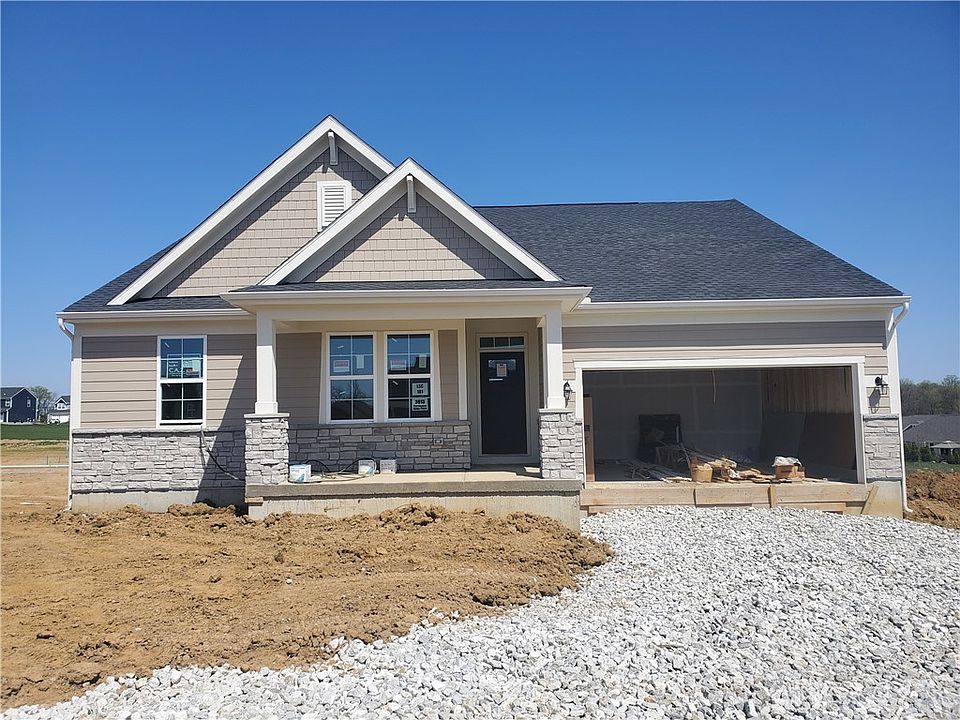 Gorgeous new Calvin Western Craftsman plan in beautiful Landings at Sugarcreek featuring a welcoming covered front porch. Once inside you'll find an open concept design with an island kitchen with stainless steel appliances, upgraded cabinetry with 42 inch uppers and soft close hinges, quartz countertops, walk-in pantry and walk-out morning room all open to the huge family room. Homeowners retreat with an en suite that includes a double bowl vanity, soaking tub, separate shower and walk-in closet. There are 2 additional bedrooms and hall bath. Full walk-out basement with full bath rough-in and a 2 car garage.