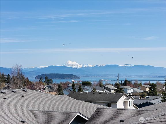 Take in breathtaking Mt. Baker and Fidalgo Bay views from your covered deck, perfect for relaxing in any season. Inside, vaulted ceilings and a gas fireplace create a warm, open living space. The kitchen shines with shaker cabinets, granite counters, stainless steel appliances, and a breakfast bar for easy dining. Retreat to the spacious primary suite featuring a walk-through closet and an ensuite bath with dual sinks and a walk-in shower. Enjoy the convenience of a one-car garage plus extra parking right out front. Just a short stroll to the Little Cranberry Lake trailhead and a short drive to town, this home blends comfort, style, and location for easy island living.