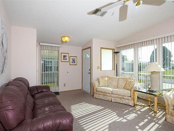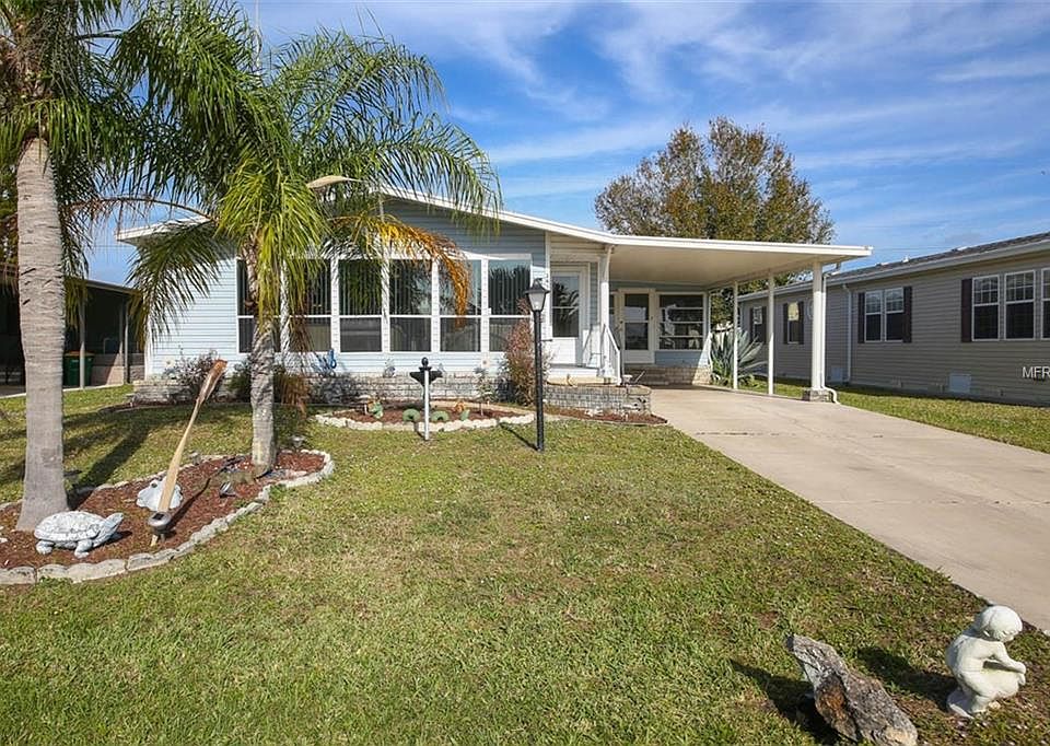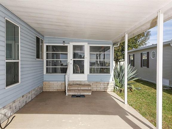 Here is your opportunity to own a 2 bedroom, 2 bath, 1337 square foot doublewide in Vizcaya Lakes. The great room offers plenty of room to entertain and has a lot of natural light entering through. The great room is open to the kitchen and dining room. In the kitchen, there are plenty of cabinets for all your kitchen essentials, a 4x3 pantry, and a breakfast table for extra seating. The dining room could be used as an office if one desired. The guest bedroom has laminate flooring and is across from the guest bathroom that offers a tub/shower combo. In the master bedroom, there is two closets and one is a 8x4 walk in closet and the other is a standard closet. The on suite bathroom offers dual sinks and a walk in shower. The laminate flooring is newer that can be found in the dining room, guest bedroom, and master bedroom. The front lanai has newer vinyl plank flooring and offers plenty of room to entertain. The laundry room offers extra cabinets for storage and the washer and dryer stay with the home. The front lanai is connected to the attached shed that is 12x6 and offers more storage for all your needs. There is even a rear lanai that offers extra room to entertain and is perfect place to watch the sunsets. In the back of the home, there is a patio for grilling and lounging out enjoying the Florida sunshine. Vizcaya Lakes has a HOA fee of $187 a quarter and the community offers fishing, a community pool, recreation facility with many activities, shuffleboard, and tennis. Come check out this home today!