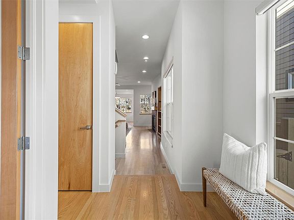 Don’t miss the chance to own this peaceful Northfield Commons home, located by the scenic Mountain View Memorial Park with private, stunning views. Surrounded by lush greenery, this eco-friendly duplex is designed with sustainability in mind. A covered porch leads to a bright, freshly painted interior with 10-foot ceilings and plenty of natural light. The spacious living room features a cozy tiled fireplace. The gourmet kitchen has maple cabinets, granite countertops, and high-end stainless steel appliances. Sliding doors from the dining area open to a private patio and garden. The main floor also includes a home office. Upstairs, you'll find three large bedrooms, including a primary suite with a private balcony, fireplace, and five-piece bath. The third floor offers a flexible entertainment space with a wet bar, rooftop deck, fireplace, and wiring for a hot tub. The finished basement provides extra storage and living space. The 2-car tandem garage is pre-wired for an EV charger. This home is Built Green and Energy Star rated for easy, efficient living. Ideal for a lock-and-leave lifestyle!