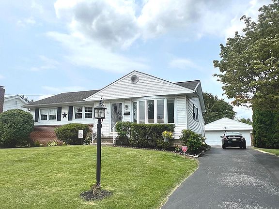 This cozy and inviting Ranch Style home has so much to offer!!! The home was built with a larger main bedroom then most of the Ranch Style homes in the surrounding area (estimated 6 ft.) which also includes a walk-in closet and outside entrance to a brand new deck surrounded by the large fenced in rear yard. The hall bathroom is also larger than most! This charming home also features a three season room with new carpet and wall AC unit, a finished basement with family room and powder room along with a laundry room with tons of cabinets for storage as well as an add on closet. Of course we cannot forget about the detached 2 car garage, what a bonus!!! Recent improvements include; Freshly landscaped front, side & back yard, Freshly painted rooms, Newly cleaned carpets throughout, new deck installed July 2023, bonus closet and extended storage in laundry room. The owner has always kept the house clean and well maintained. The owner's love for the home was evident in every aspect of its care and maintenance. There is a water purifying system as well as an alarm system, the buyer can take over if they would like.