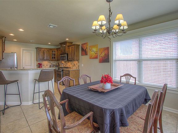 You will Love this Full Brick, Single Story, Split Bedroom Floor Plan in Jenks West District. Functional, Open Layout with 10 Foot Ceilings and Crown Molding. Custom Maple Cabinets, Solid Granite in Kitchen and Large Pantry. Kitchen Open to Living Room and Dining Nook. Gas Log Fireplace. Master Suite Features Double Sinks, Separate Shower, Jetted Tub & Walk-In Closet. New Roof, New Guttering, New Carpet, New Paint, New Garage Door. Quality Construction, One Owner Home. Fantastic Neighborhood Amenities.