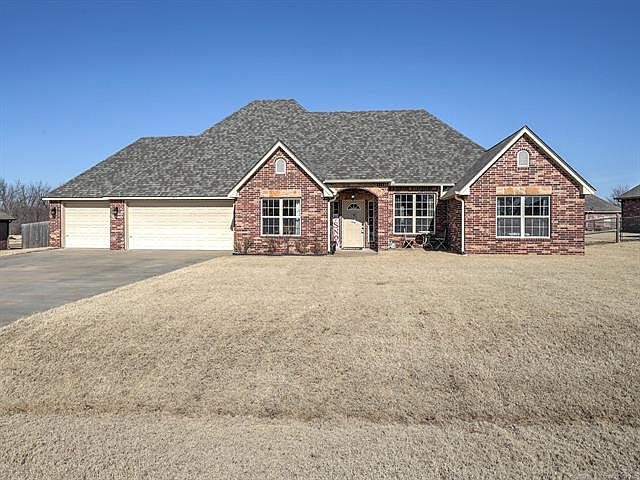 Don't miss this one. Spacious 3 bedroom and 2 bath split floor plan home with 3 car garage in established neighborhood. Large backyard with extended patio and above ground pool. Close to schools and Skiatook Lake. New roof in 2020.