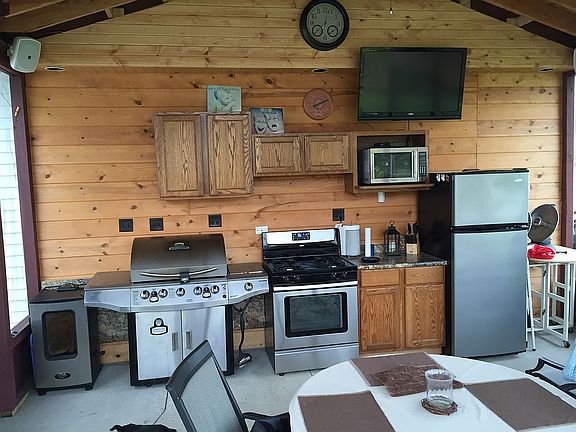 LARGE CORNER LOT JUST 15 MINUTES FROM I65 Burber carpeting throughout, neutral ceramic tile in foyer and kitchen. The Kitchen has a breakfast bar and has room for a large table, updated sink and counter tops makes this kitchen a cooks dream. Additional outside kitchen, with stainless stove, fridge, microwave, smoker, huge gas grill as well as charcoal grill in a huge covered , screened porch. Double sink in bathroom with whirlpool tub on main level with three bedrooms and downstairs has a large bedroom with separate closets, pool table room and rec. room with plenty of storage, fenced yard. Move right in!
